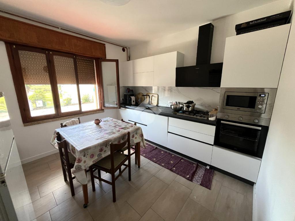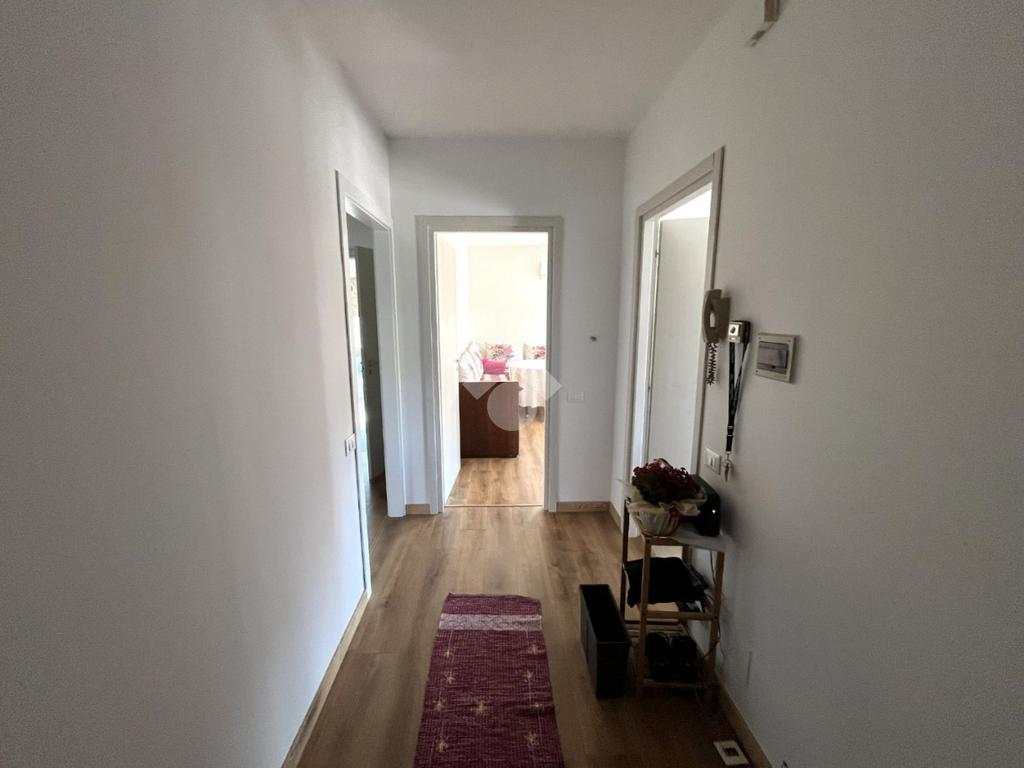 Varcata la soglia d'ingresso troviamo un disimpegno che ci conduce alla cucina, separata dalla zona giorno dalla quale è possibile accedere ad un primo terrazzo.