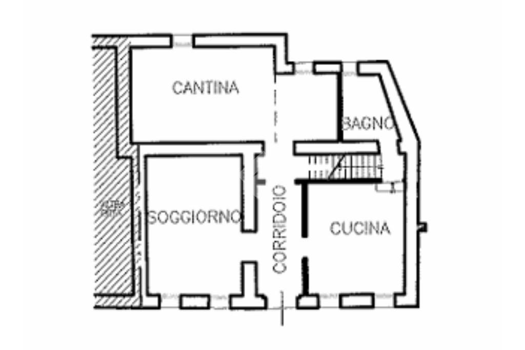 Al piano terra ingresso su corridoio luminoso cucina separata dal soggiorno cantina di generose dimensioni e bagno con doccia