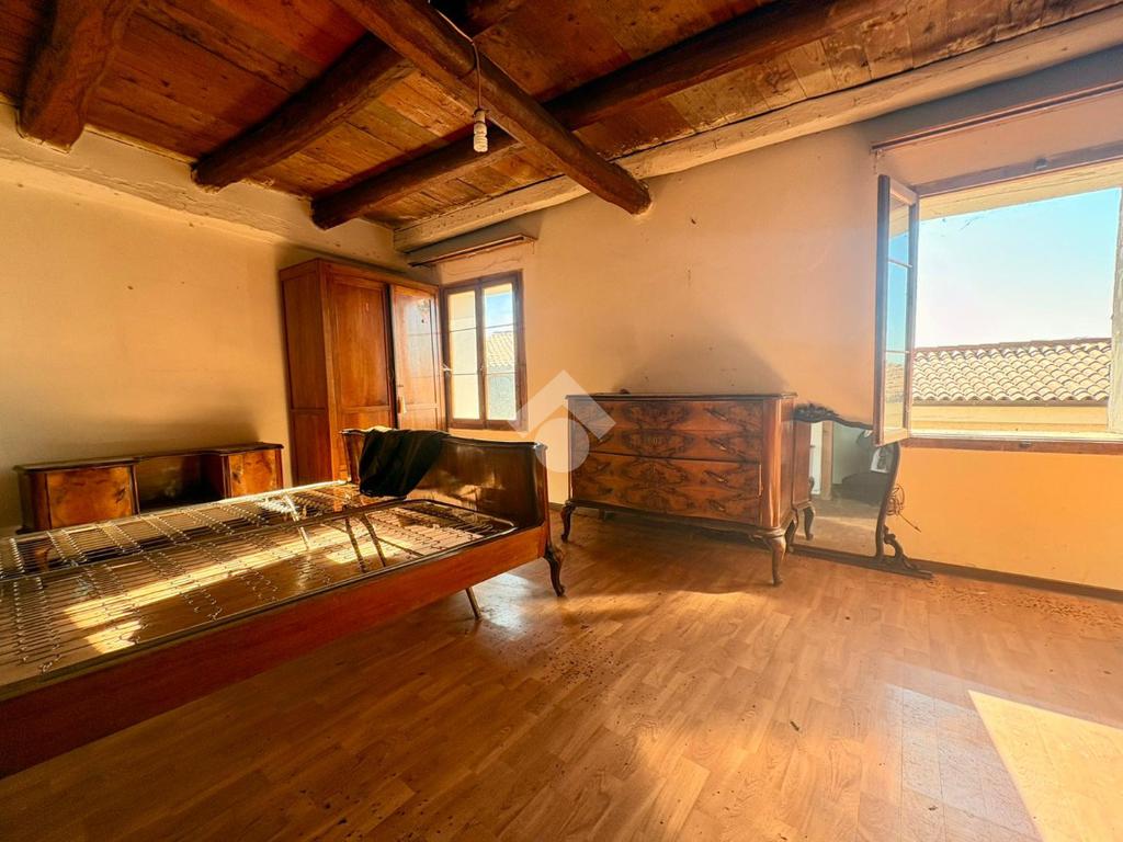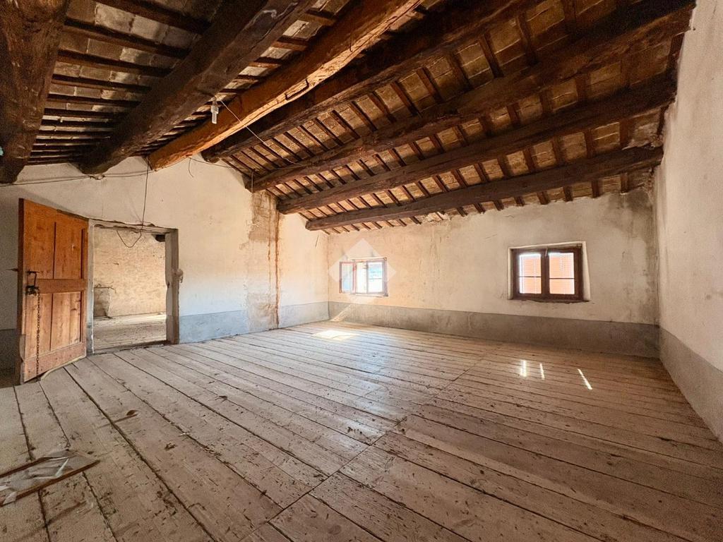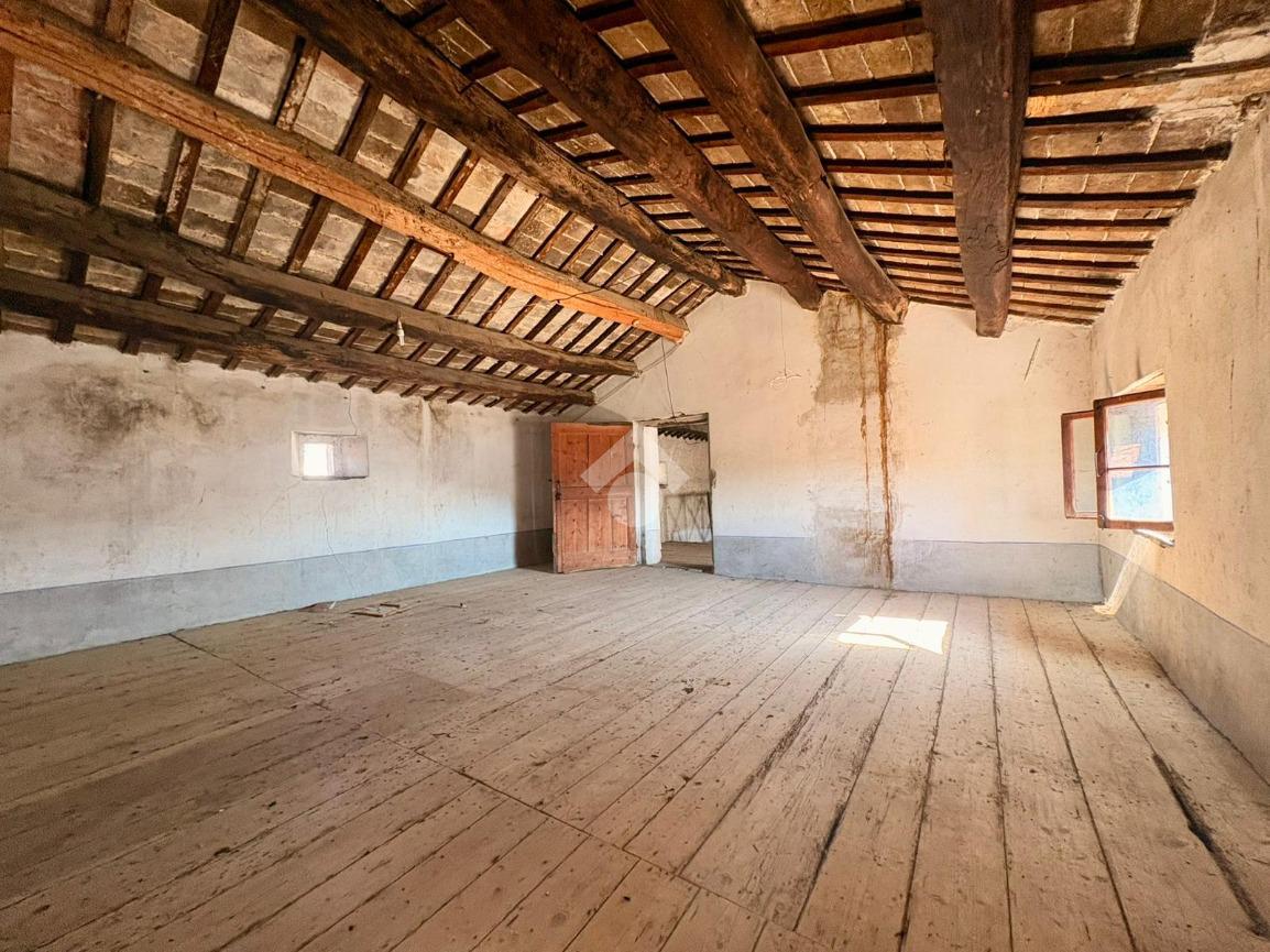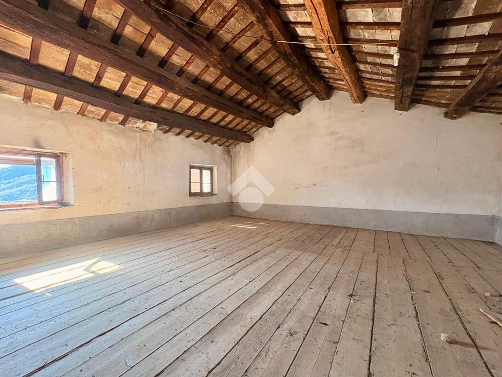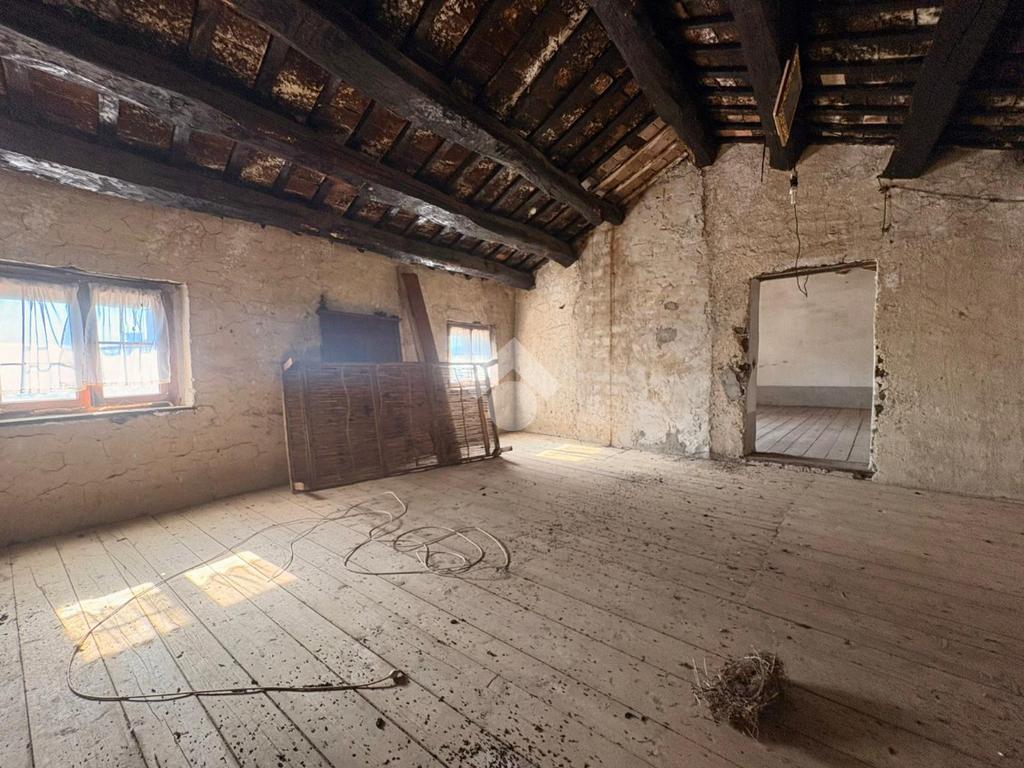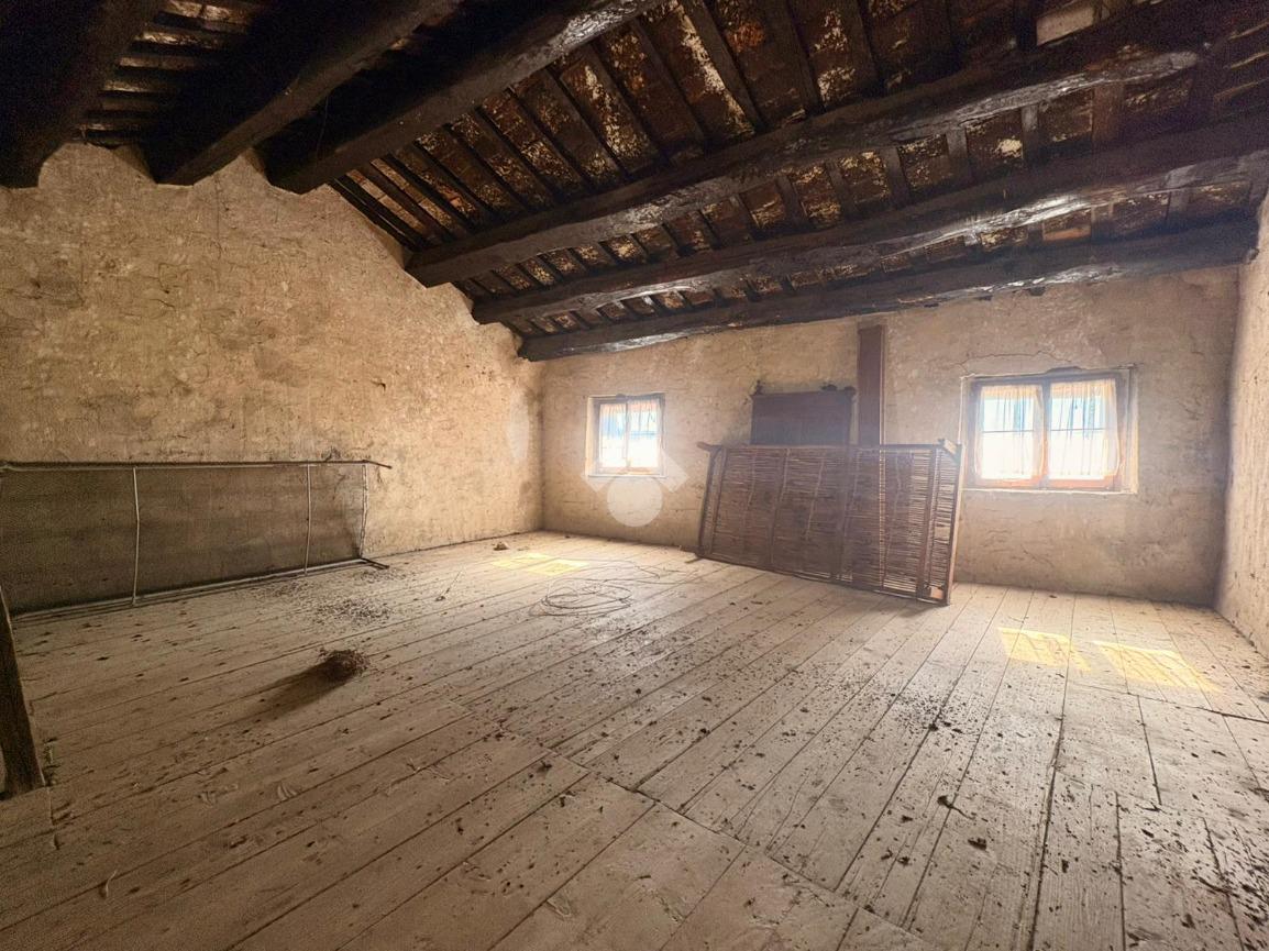L’abitazione si sviluppa su più livelli. Al piano terra si trova un accogliente soggiorno con camino, una cucina separata, una pratica dispensa e un bagno con doccia. Il primo piano ospita due ampie camere matrimoniali e un ripostiglio, offrendo spazi ben distribuiti e confortevoli. Salendo al secondo piano si apre una grande soffitta, caratterizzata da travi a vista, che offre la possibilità di ricavare due ulteriori camere matrimoniali, valorizzando al massimo il potenziale dell’immobile.