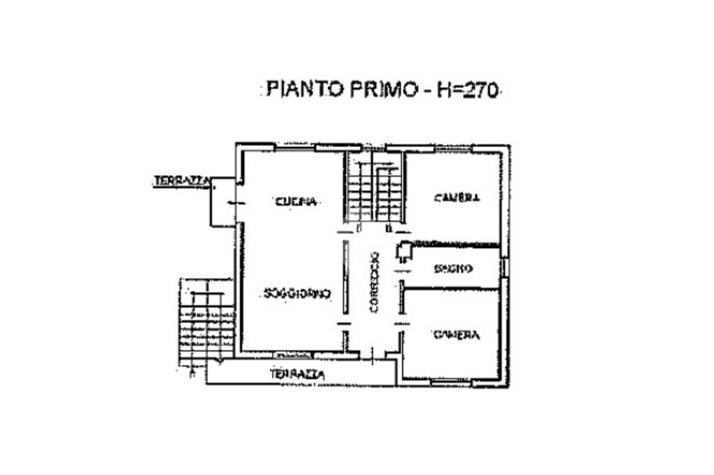 Il primo piano ospita una luminosa zona giorno con cucina e soggiorno in open space, due camere e un bagno, offrendo una distribuzione funzionale e accogliente degli spazi.